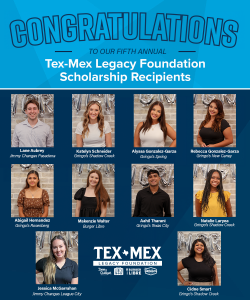We are absolutely thrilled to share the Tex-Mex Legacy Foundation has granted ten well-deserved scholarships to a group of exceptional individuals from our very own Team Members, in preparation for the upcoming 2023 Fall Semester. It fills our hearts with immense pride to witness their remarkable work ethic and dedication to our company every single day. As they embark on this new chapter in their lives, we couldn’t be more honored to give back to them in such a meaningful way.